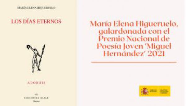 The jury of the National Award, 'Miguel Hernández,’ for Literature in the category of Young Poetry, has nominated María Elena Higueruelo Illana to be awarded the National Prize for Young Poetry 'Miguel Hernández' 2021, for her work 'Los días eternos.'