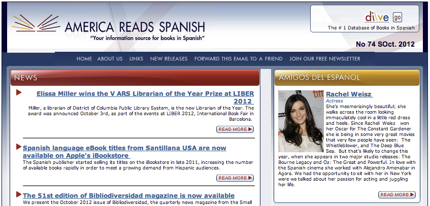 Nielsen BookScan, part of the Nielsen Company (US) LLC, and America Reads Spanish (ARS) present the free, weekly list of the Spanish bestseller titles in the US Market for week 41 of 2012 (week ending 10/14/2012).