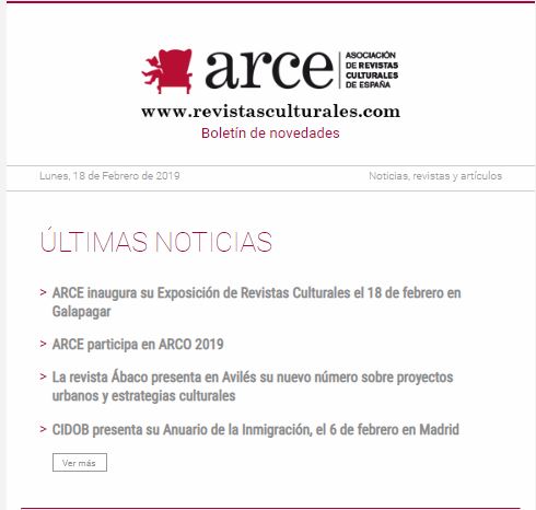 The Spanish Association of Cultural Magazines (ARCE), based in Madrid, is an association of publishers of cultural journals and magazines. It was established in 1983 following the initiative of several publishers of this type of publications.