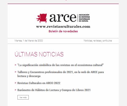 The Association of Publishers of Cultural Magazines of Spain (ARCE) was established in 1983 at the initiative of the publishers of cultural magazines, with the purpose of pooling the necessary resources and instruments to promote these cultural projects.