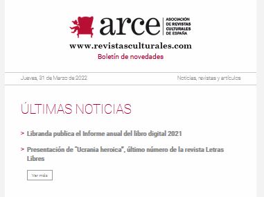 The Association of Publishers of Cultural Magazines of Spain (ARCE) was established in 1983 at the initiative of the publishers of cultural magazines, with the purpose of pooling the necessary resources and instruments to promote these cultural projects.