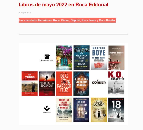 Roca Editorial is an independent publisher founded in 2003 by six partners with an extensive experience in the publishing industry. Click below to see the new releases