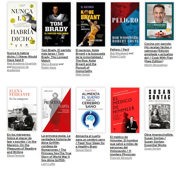 The Spanish-language divisions of Penguin Random House Grupo Editorial publish fiction and nonfiction books for adults and children in hardback, paperback, audio, and electronic formats through several Spanish imprints.