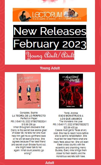 Lectorum New Releases Teen and Young Adult Trade, February 2023