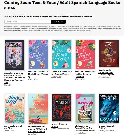 Teen & Young Adult Spanish Language Books, November 2023